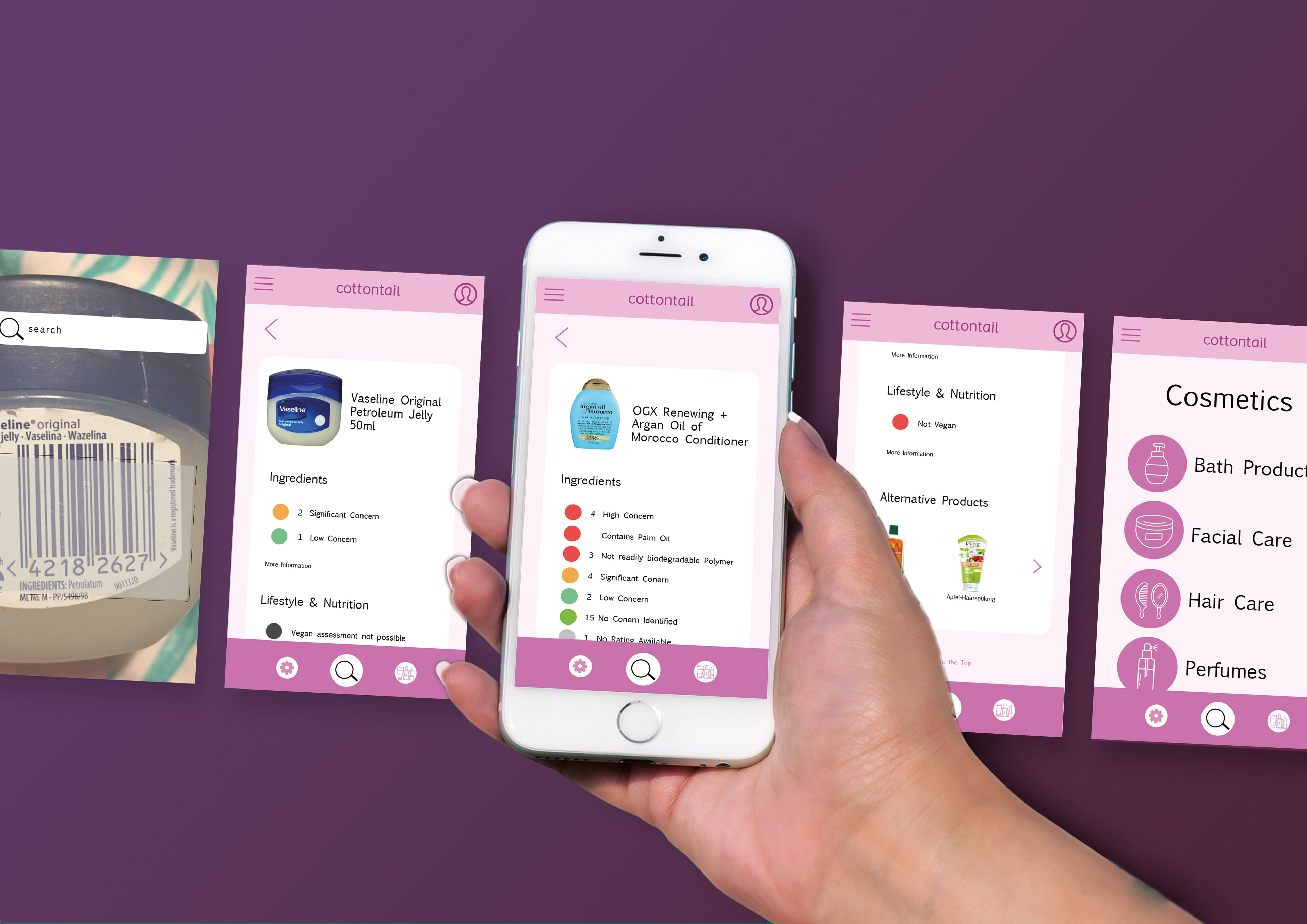 The idea with this project was to aid people into finding cruelty free and vegan products in environments where it is not usually very easy to do so. The project was app and print design based.