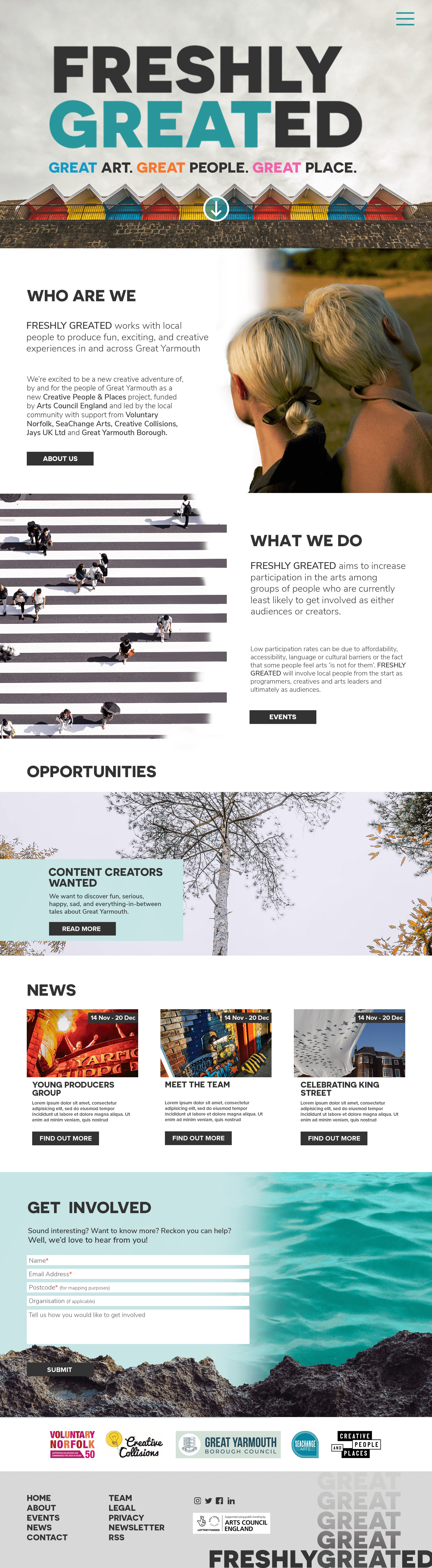 Freshly Greated is a Great Yarmouth volunteering organisation. This is a website concept design produced during my internship at Netmatters.